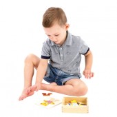 Material: Lemn, piesele sunt vopsite cu vopsele nontoxice, in culori vii.