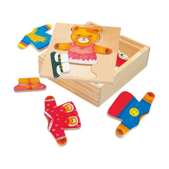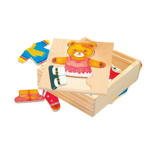 Puzzle din lemn in cutie, Imbraca Ursoaica Berta, 18 piese