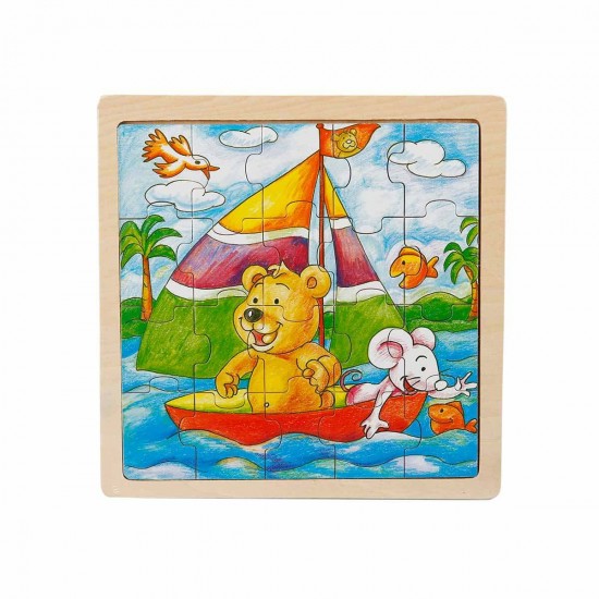 Puzzle din lemn Animale 20 el. 19,5 x 1 x 19,5 cm diverse tipuri Woody