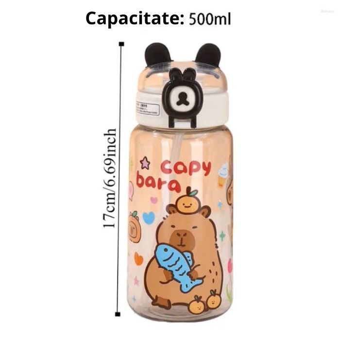 Sticla de apa copii cu capybara, 500 ml, capac si pai