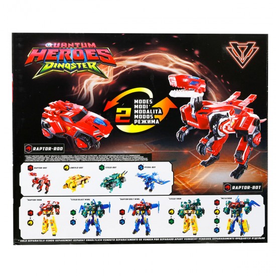 Dinozaur-Transformer Mega Dino Strike Raptor Dinoster este un robot-jucarie transformabil din populara serie Dinoster, recomandat pentru copii de la 5 ani in sus. Acest set Mega Transformer 4-?n-1 combina doua vehicule care se pot transforma in dino-roboti articulati si, de asemenea, pot fi reconectate pentru a forma un mega robot de actiune - oferind trei moduri de joaca pentru povesti captivante.