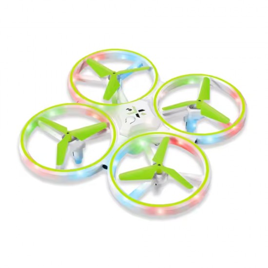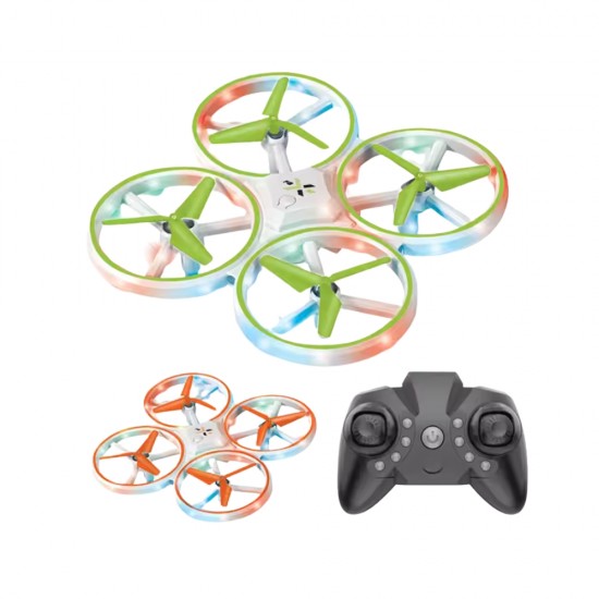 - Lumini stralucitoare sunt montate pe drona, oferindu-i un aspect atractiv.