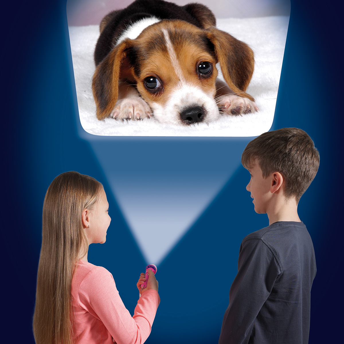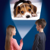 Folosind o lanterna, o imagine de pana la 1 m latime va fi proiectata pe perete. Pentru a face imaginea mai clara, poti roti lentila lanternei si regla focalizarea.