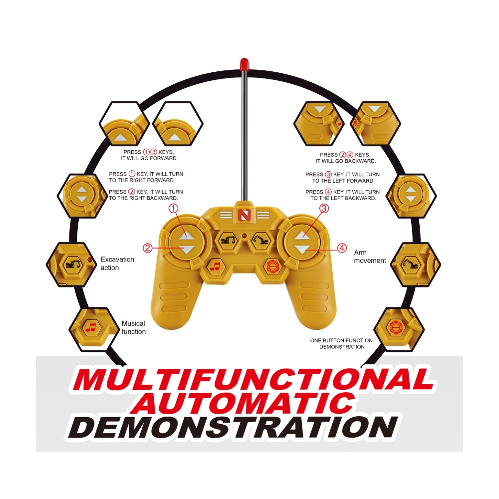 Excavatorul cu telecomanda este un vehicul de jucarie interactiv, ideal pentru copiii pasionati de masini si tehnologie. Excavatorul include functii precum deplasarea inainte-inapoi, rotirea si ridicarea bratului excavatorului, toate controlate prin telecomanda. Echipat cu lumini, acest excavator devine si mai atractiv si realist.