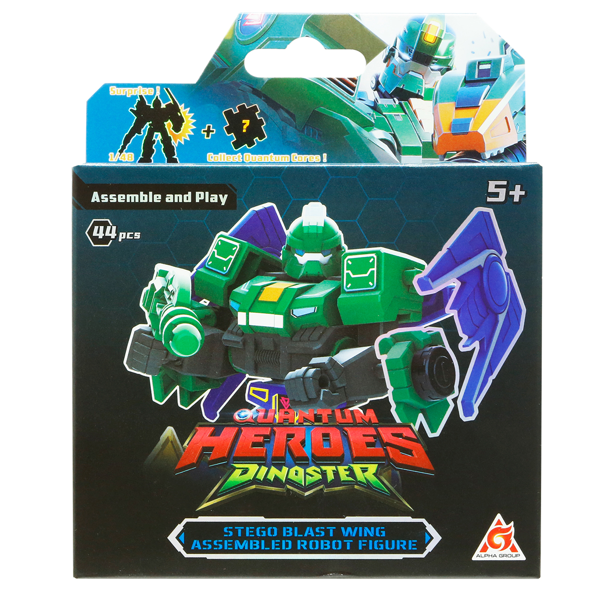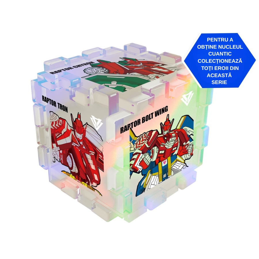 Setul include si un element special din Nucleul Cuantic cu imaginea eroului principal. Colecteaza toti eroii din serie ca sa completezi Nucleul Cuantic! Piesele au margini care se imbina intre ele, astfel incat poti crea un cub. Robotul se construieste din 44 piese, iar partile pot fi combinate cu alte personaje Dinoster pentru a crea un robot nou si original.