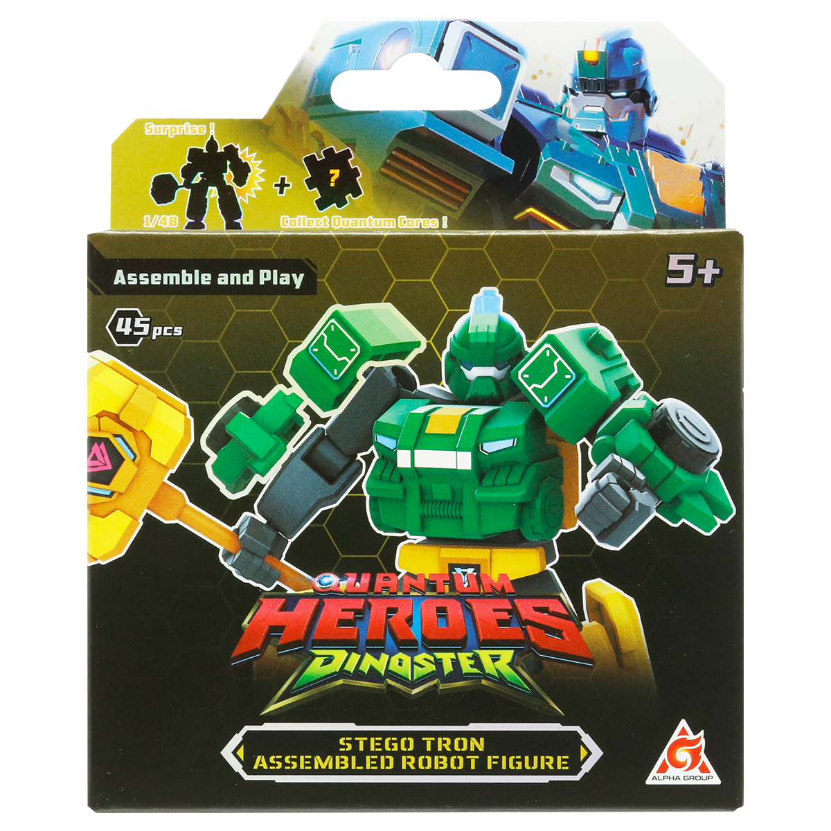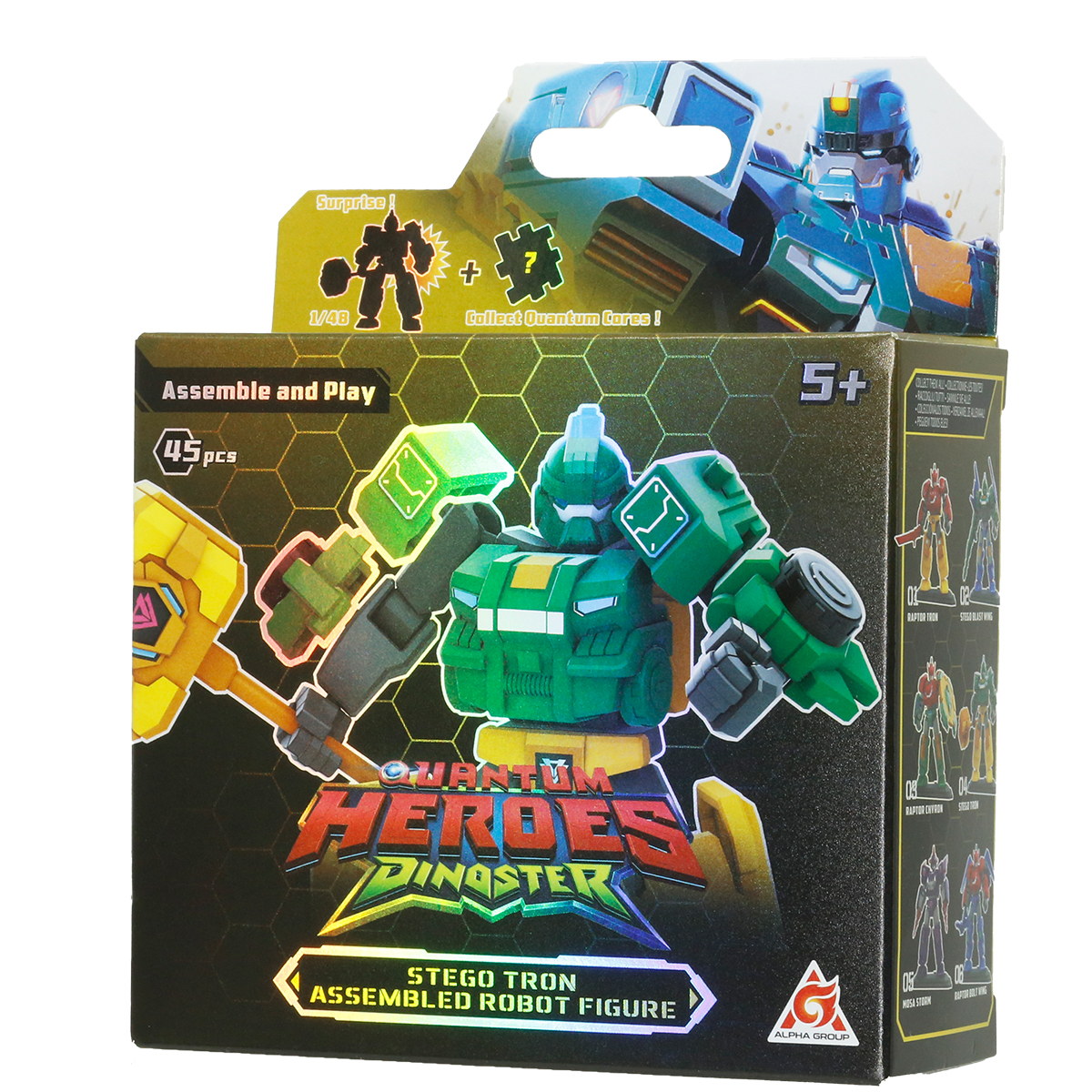 Setul include si un element special din Nucleul Cuantic cu imaginea eroului principal. Colecteaza toti eroii din serie ca sa completezi Nucleul Cuantic! Piesele au margini care se imbina intre ele, astfel incat poti crea un cub. Robotul se construieste din 45 piese, iar partile pot fi combinate cu alte personaje Dinoster pentru a crea un robot nou si original.