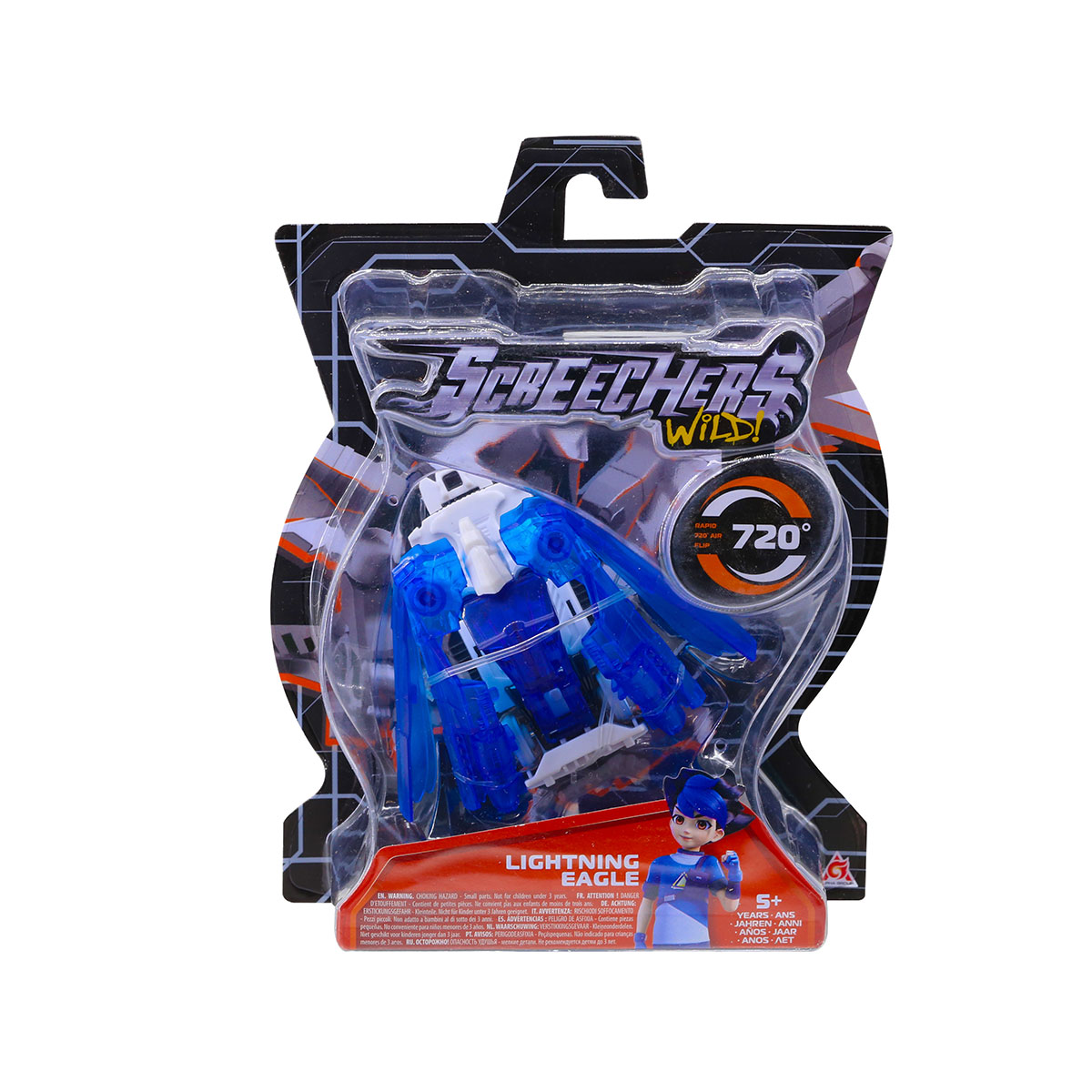 O jucarie din seria Screechers Wild! care combina actiunea rapida cu transformarea spectaculoasa. Aceasta masina speciala se transforma intr-un vultur puternic atunci cand este activata de viteza in miscare.