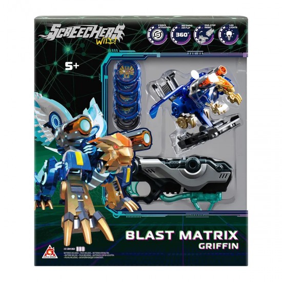 Modelul Screechers Wild S5 L2 Griffin impresioneaza prin transformari rapide din masina in bestie de lupta sau robot, folosind lansatorul-blaster si discurile magnetice. In plus, jucaria include elemente luminoase care fac experienta de joc si mai captivanta.