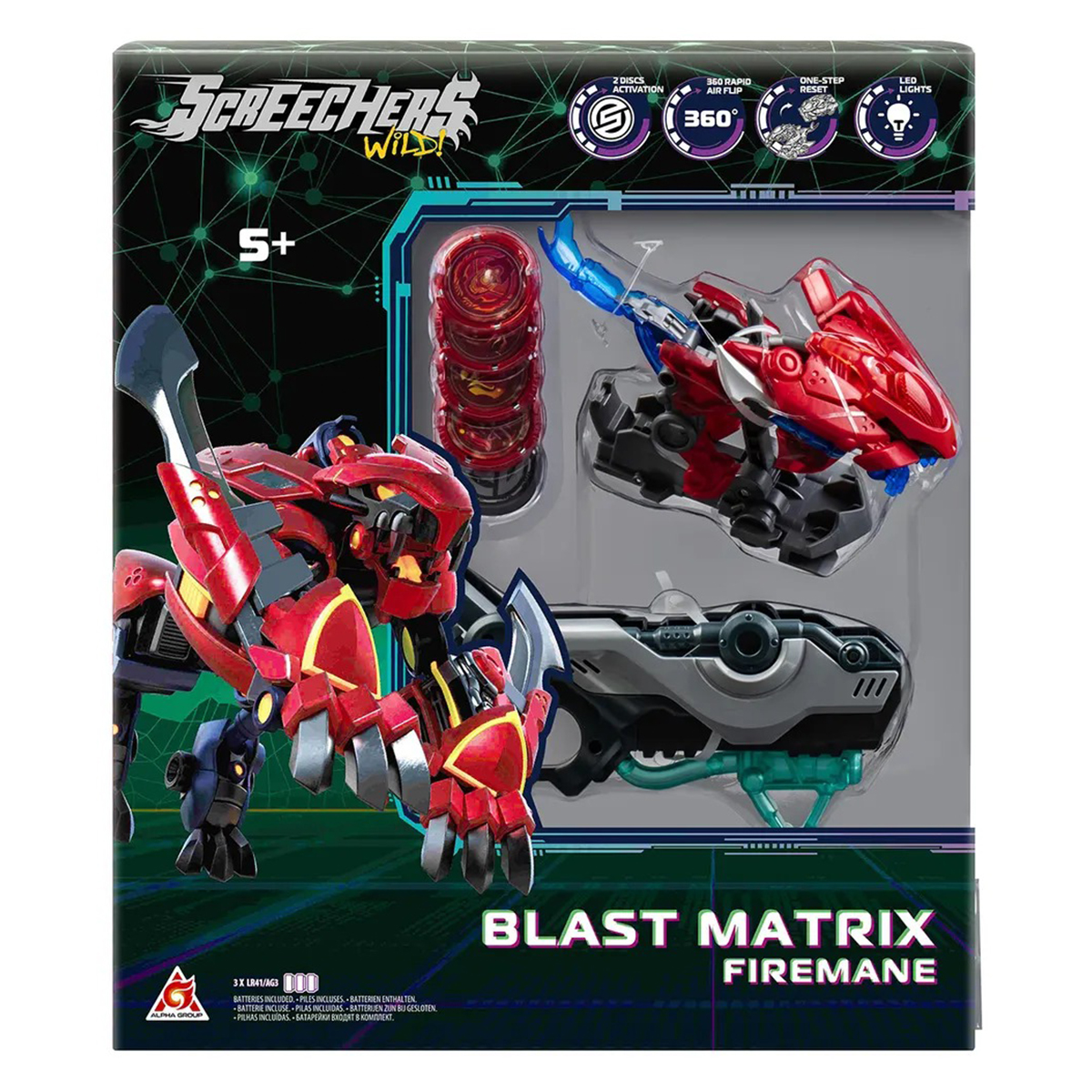 Modelul Screechers Wild S5 L2 Fireman transforma joaca intr-o experienta dinamica, trecand rapid din masina intr-un robot sau bestie de lupta cu ajutorul lansatorului-blaster si al discurilor magnetice. Jucaria include si elemente luminoase care adauga un efect vizual impresionant.