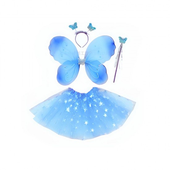 Set Aripi de Fluture violet/roz/albastru cu fustita, cerc si bagheta, ZJA359655