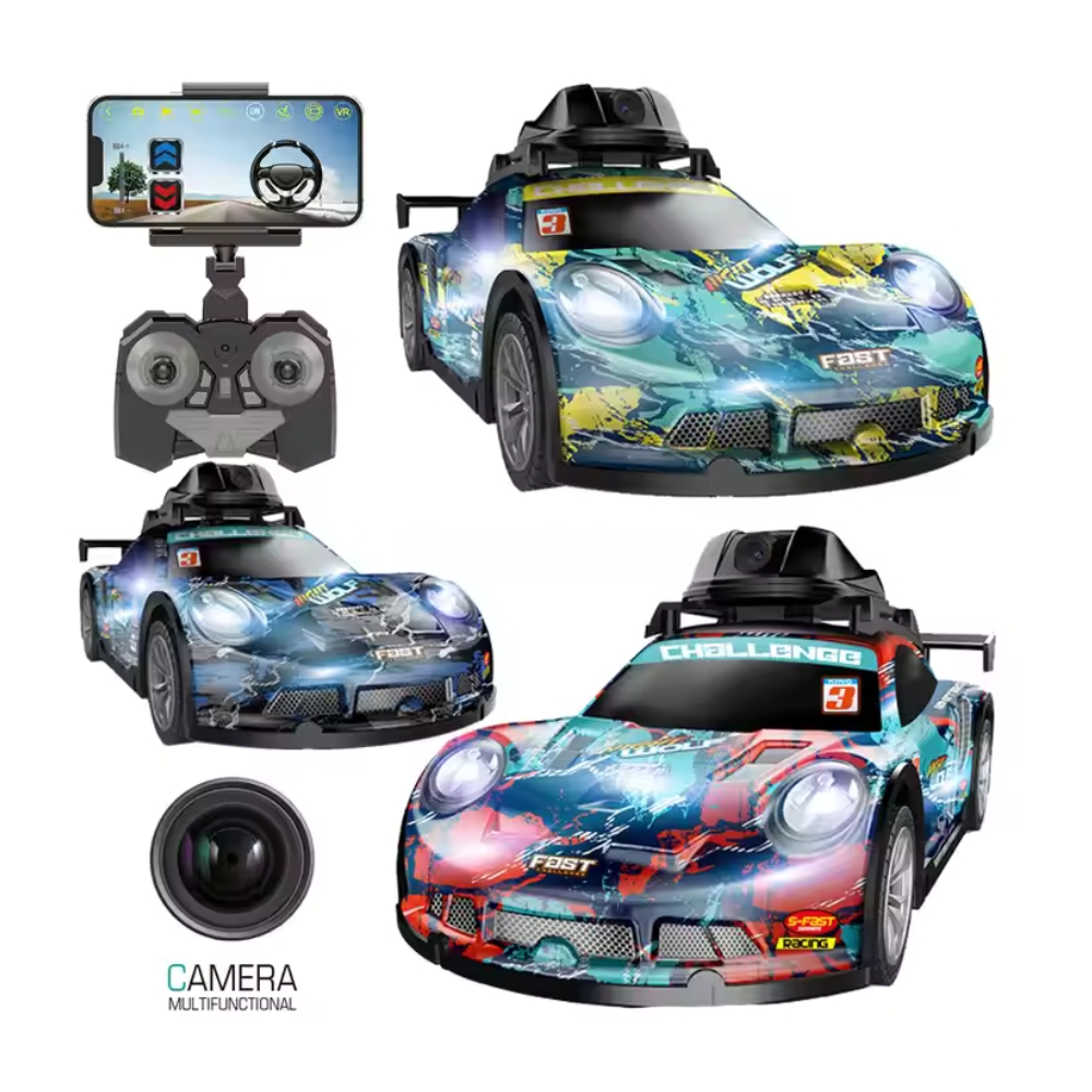 Masina cu camera FPV Racing cu telecomanda (RC) este un model inovator, perfect pentru iubitorii de viteza si tehnologie. Aceasta vine echipata cu o camera FPV (First Person View), care iti permite sa vizualizezi in timp real actiunea direct din perspectiva mainii, oferind o experienta captivanta.