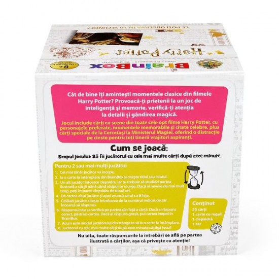 Pentru cei mai mari fani Harry Potter, Brainbox ofera un joc de memorie super inteligent care va aduce o multime de emotii pozitive in momentele petrecute frumos in familie sau intre prieteni.