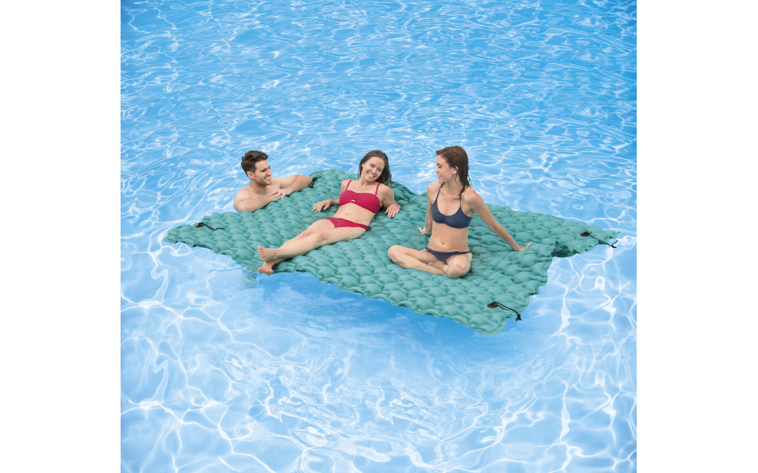 Salteaua gonflabila gigantica Intex "Giant Floating Mat" este un accesoriu excelent pentru relaxare si distractie pe apa. Datorita dimensiunilor mari, poate sustine mai multe persoane simultan, iar materialul rezistent asigura durabilitate si confort. Este echipata cu conectori speciali pentru a fi atasata la alte saltele gonflabile, ceea ce o face ideala pentru petrecerea timpului in compania prietenilor.
