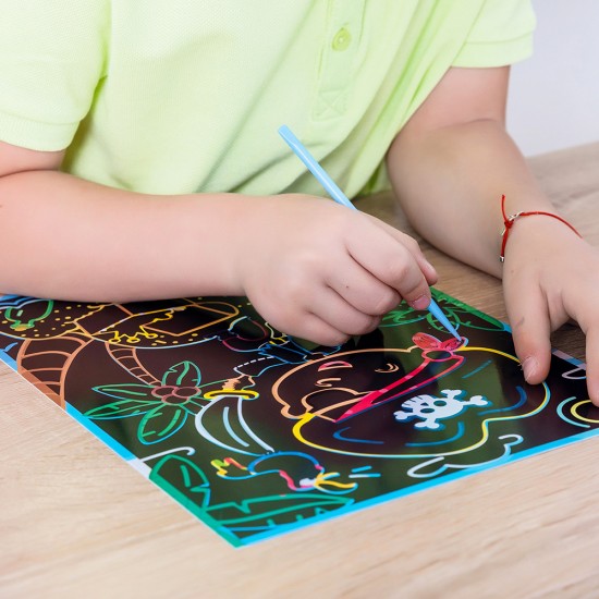 Gravura pentru copii este un proces foarte interesant si captivant! Pentru a realiza o gravura buna, copilul trebuie sa depuna eforturi maxime - sa fie atent, sarguincios, precis in miscarile sale. Fiecare miscare a creionului indeparteaza stratul negru de vopsea si dezvaluie o imagine colorata. Mai intai, arata-i copilului tau cum sa tina creionul si sa execute miscarile, apoi bucura-te de capodopera impreuna!