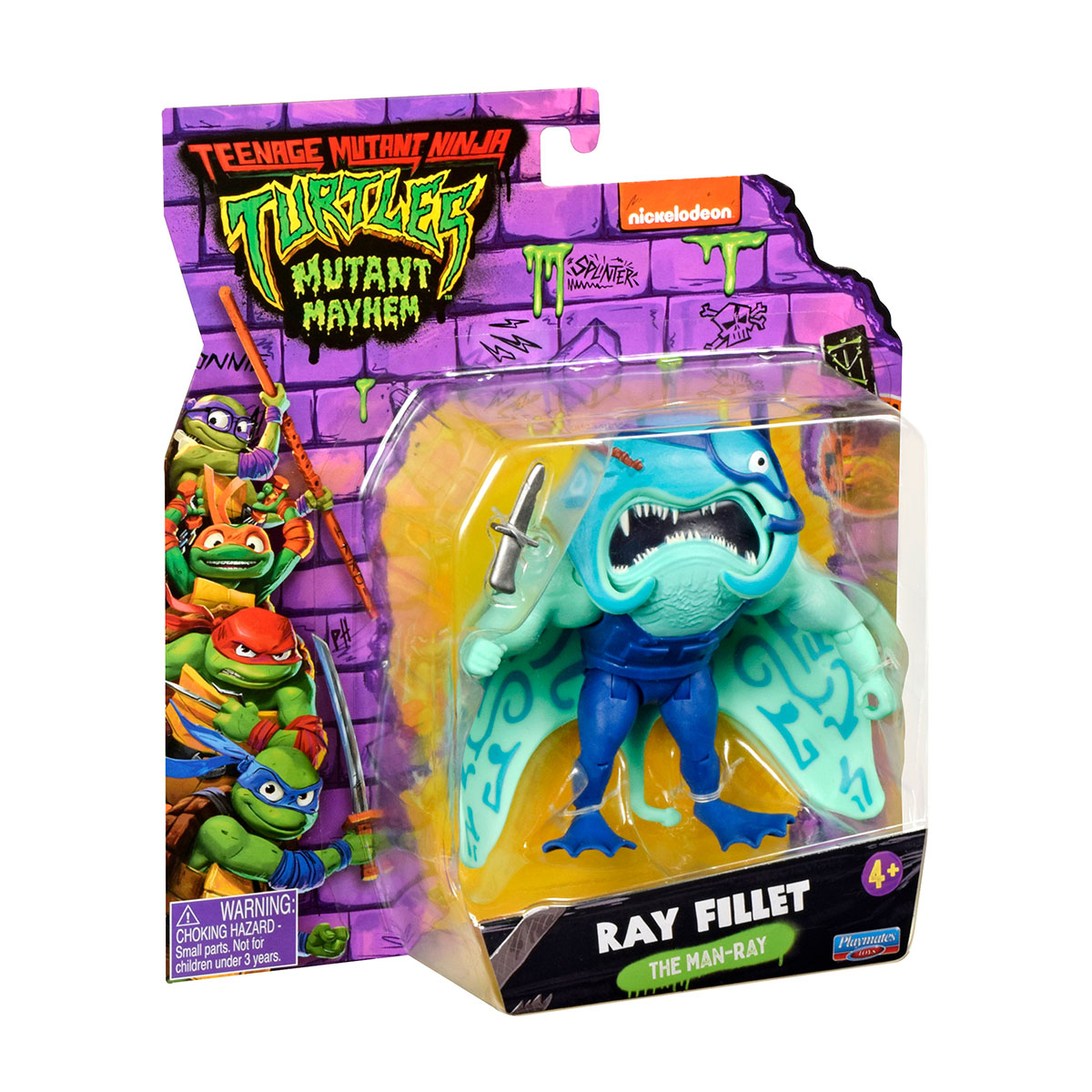 Pregateste-te pentru actiune cu figurinele TMNT inspirate din filmul animat "Testoasele Ninja Mutante"! Ray Fillet, mutantul in forma de pisica de mare, este gata de lupta cu masca sa impunatoare si tubulata. Indiferent daca domina valurile oceanului sau se avanta in lupta sonora, Ray Fillet este un adversar de temut, gata sa infrunte raul. Cand Superfly isi dezvaluie planul malefic, Ray Fillet trebuie sa decida de partea cui este - a eroilor sau a raufacatorilor.