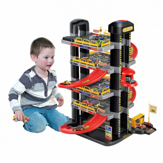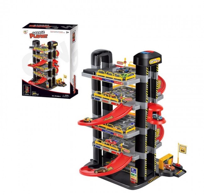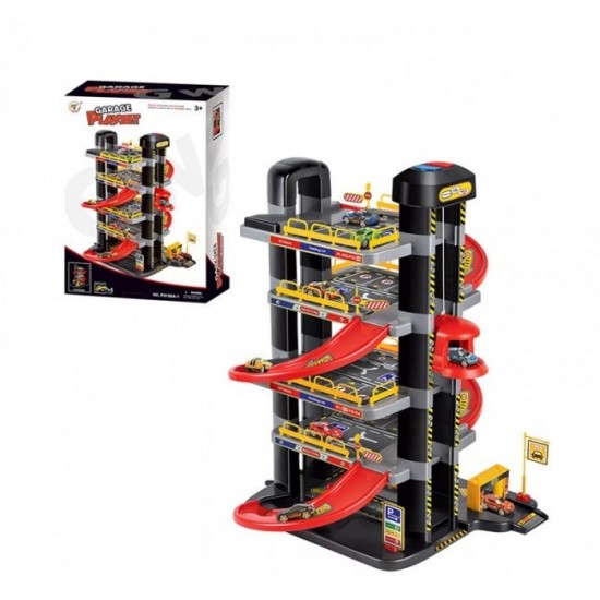 Un set complex si interactiv, creat pentru a oferi copiilor o experienta captivanta de joaca. Setul reprezenta un garaj multi-etajat si o parcare, cu rampa de acces, piste si locuri de parcare. Setul include 5 masinute si diferite elemente pentru crearea unui mediu de joaca complet.