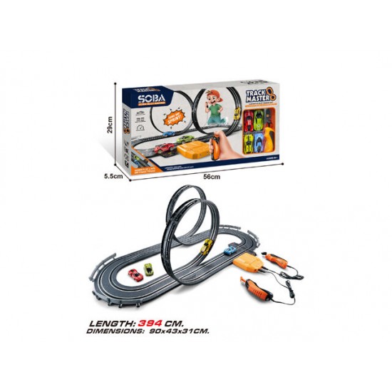 Set pista de curse cu 4 masinute cu telecomanda, 394 cm Track Master
