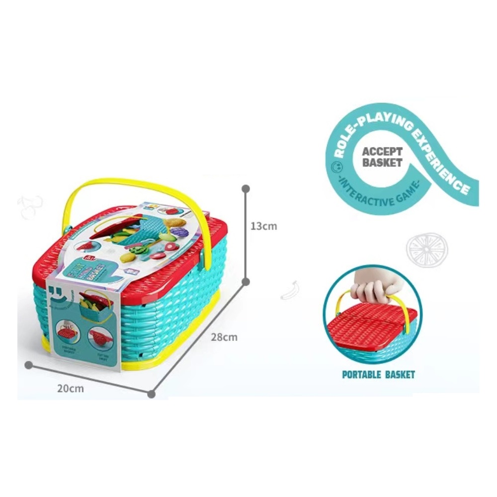 Un cos adorabil si interactiv, plin cu 14 fructe colorate si detaliate, precum mere, banane, portocale si struguri, fiecare fiind realizat din materiale sigure si durabile. Fiecare detaliu este atent realizat pentru a adauga realism jocului si pentru a incuraja copiii sa invete despre alimentatie, interactiuni sociale si sa simuleze experiente cotidiene. Cosul este usor de transportat si poate fi folosit atat in interior, cat si in aer liber.
