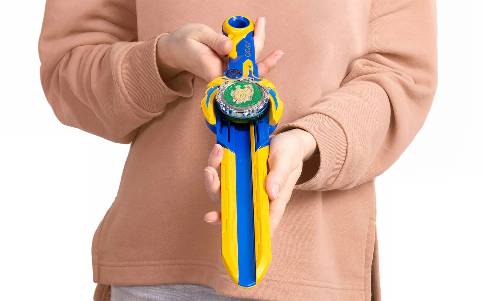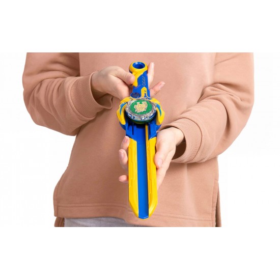 Introdu partea superioara a dispozitivului Nado in rampa de lansare a sabiei - trage inainte si inapoi pentru a accelera. Nado se va aprinde automat pe masura ce invartesti, apoi apasa pe tragaciul de pe maner, tinteste si trage pentru a incepe confruntarea epica cu prietenii tai.