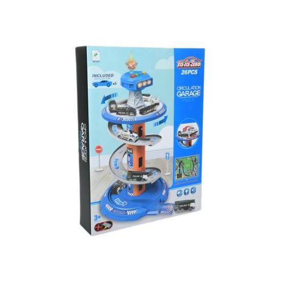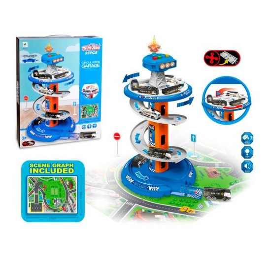 Un set complex si interactiv, creat pentru a oferi copiilor o experienta captivanta de joaca. Setul reprezenta un garaj multi-etajat si o parcare, cu rampa de acces, piste si locuri de parcare. Setul include 3 masini, 1 turn, 1 semn de circulatie, harta si diferite elemente pentru crearea unui mediu de joaca complet.