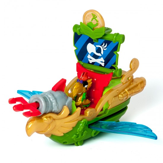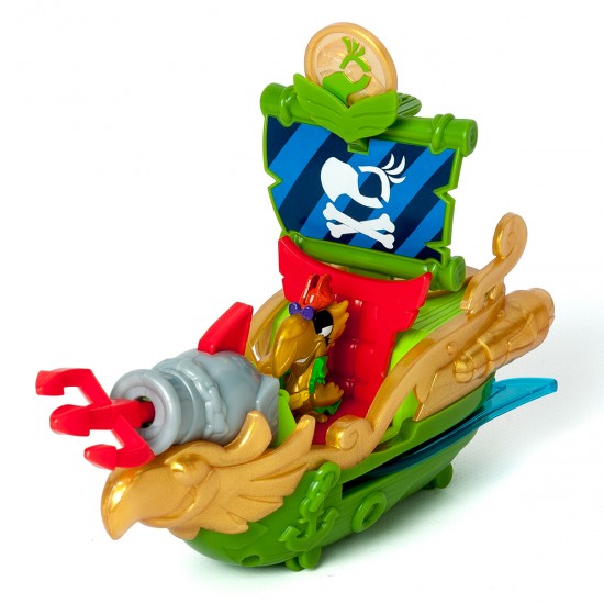" Superfunctie interactiva: introdu moneda exclusiva in suportul in forma de aripi de papagal si activeaza aripile laterale semitransparente ale corabiei