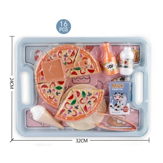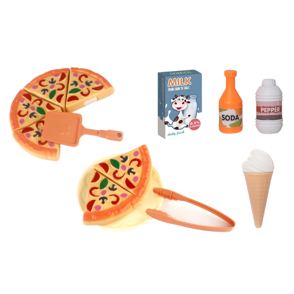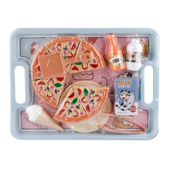 Setul contine o pizza, cu felii ce pot fi "taiate" si multiple accesorii pentru a simula bauturi, precum pahare si sticle. Acest set incurajeaza dezvoltarea abilitatilor sociale, a creativitatii si a motricitatii fine, printr-un joc ce imita situatii din viata de zi cu zi.
