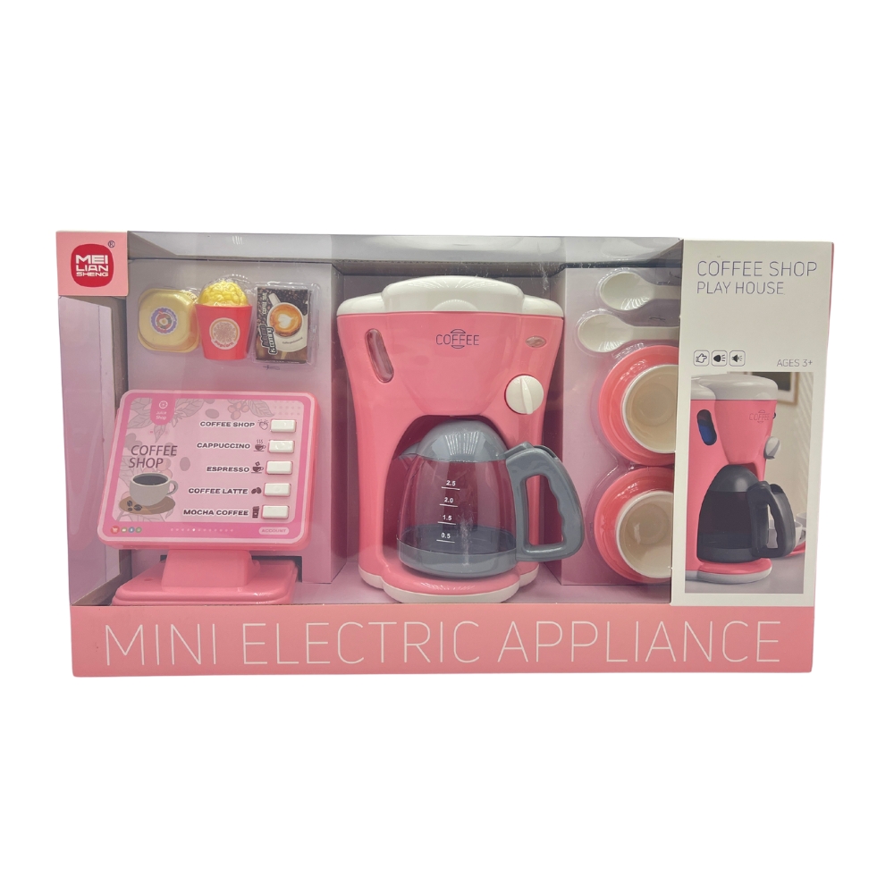 Un set distractiv si interactiv , care imita un aparat de cafea real, oferind o experienta de joc captivant si educativ. Setul este echipat cu sunete si lumini, facand experienta mai realista. Sunetele pot imita zgomotul facut de un aparat de cafea in timpul pregatirii, iar luminile se aprind in momentul utilizarii. Mai mult, ve-i gasi diverse accesorii pentru o experienta completa de joaca, precum cani, lingurite si capsule de cafea.