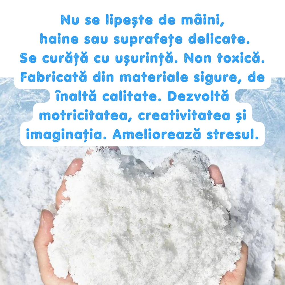 Un set ce va aduce bucuria iernii in orice moment al anului, oferind copiilor posibilitatea de a crea propriul lor om de zapada folosind zapada artificiala. Acest set include o valiza usor de transportat si 8 accesorii pentru a reda atmosfera perfecta. Setul contine 300g de zapada artificiala, care este sigura si non-toxica, oferind o experienta de joaca captivanta si distractiva.