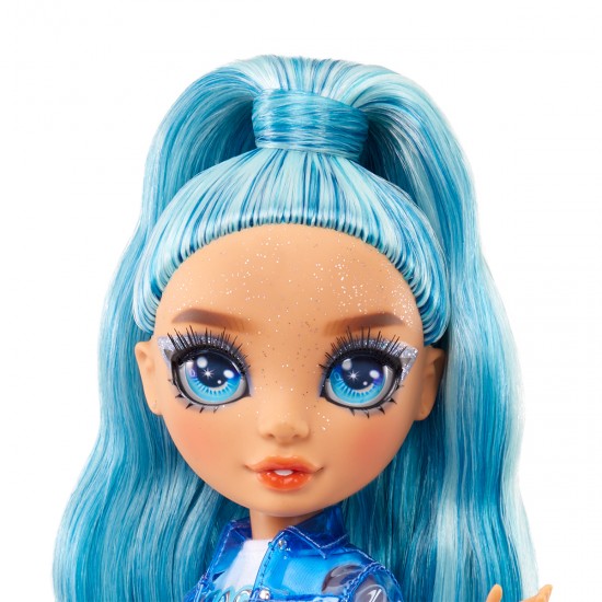 Papusa RAINBOW HIGH este o frumusete eleganta, cu par si haine albastre stralucitoare, cu par lung luxos care poate fi pieptanat si creat in diverse coafuri.