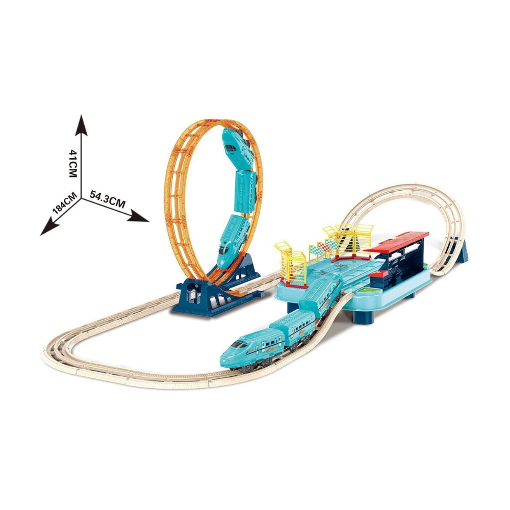 Un set de joaca foarte captivant care iti va permite sa descoperi lumea aventurilor feroviare. Setul include multe elemente precum poduri, cotituri si chiar o roata care iti permite sa construiesti drumuri variate si cool. Setul include, de asemenea, un tren cu trei vagoane, gata sa te duca intr-o calatorie interesanta pe propria ta cale ferata. Locomotiva functioneaza cu baterii, ceea ce asigura ore lungi de joc.