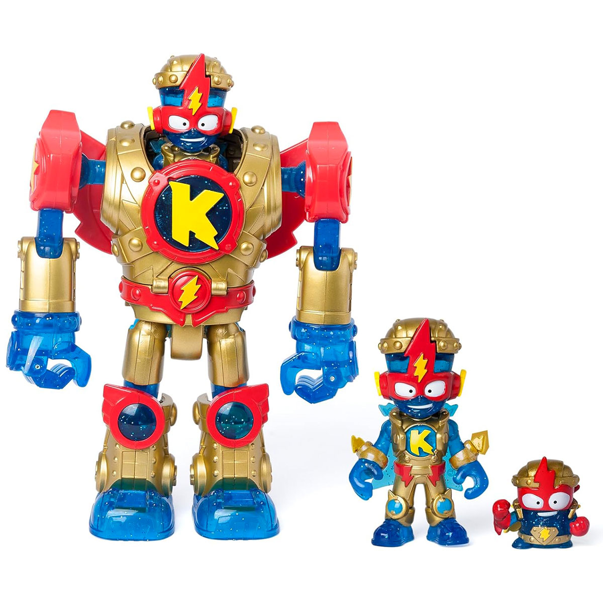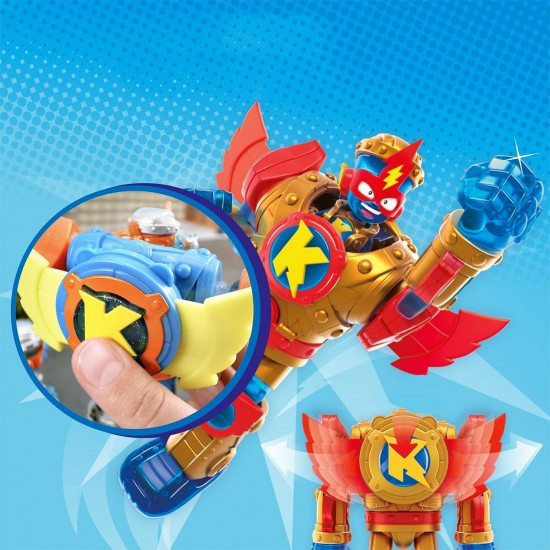 Copiii pot aseza figurina Kazoom Kid sau SuperThing in partea superioara a robotului si pot controla actiunile acestuia in lupta impotriva raufacatorilor. Setul include robotul Golden Armor, o figurina Kazoom Kid, un SuperThing si un accesoriu de lupta. Ideal pentru copii de la 3 ani in sus.