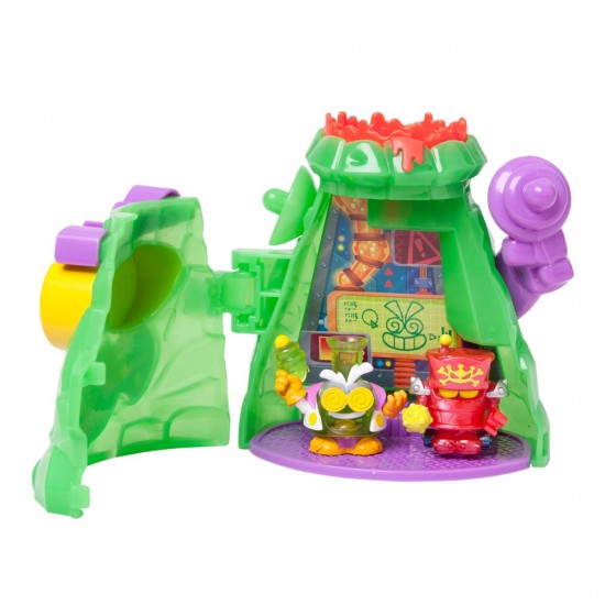 Baza are forma unui vulcan-laborator plin de surprize. Descopera intrarea ascunsa si deschide laboratorul - semnul discret in forma de sageata iti arata locul secret. In interior te asteapta o functie super distractiva: catapulta ascunsa. Pune o figurina tip Robotoxic in craterul vulcanului, coboara parghia si priveste lansarea spectaculoasa, ca intr-o scena de actiune.