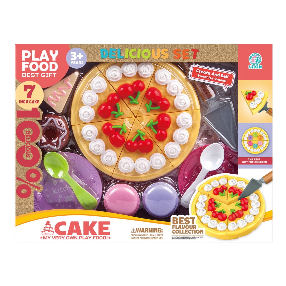 Un set adorabil si interactiv ce include tort cu cirese, vesela si accesorii de jucarie specifice pentru a le "servi". Fiecare detaliu este atent realizat pentru a adauga realism jocului si pentru a incuraja copiii sa invete despre alimentatie, interactiuni sociale si sa simuleze experiente cotidiene. Este un cadou ideal pentru orice copil care adora sa se joace de-a patiseria sau sa organizeze petreceri de bucate delicioase!