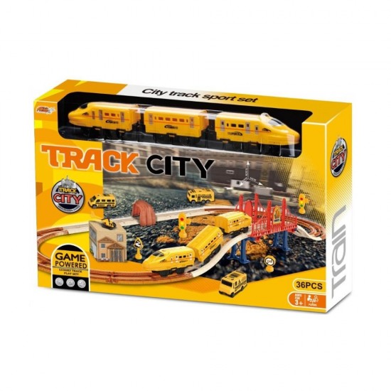 Set de joaca Cale ferata galbena cu tren electric, elemente fosforescente, accesorii si acumulator, ZJA361472