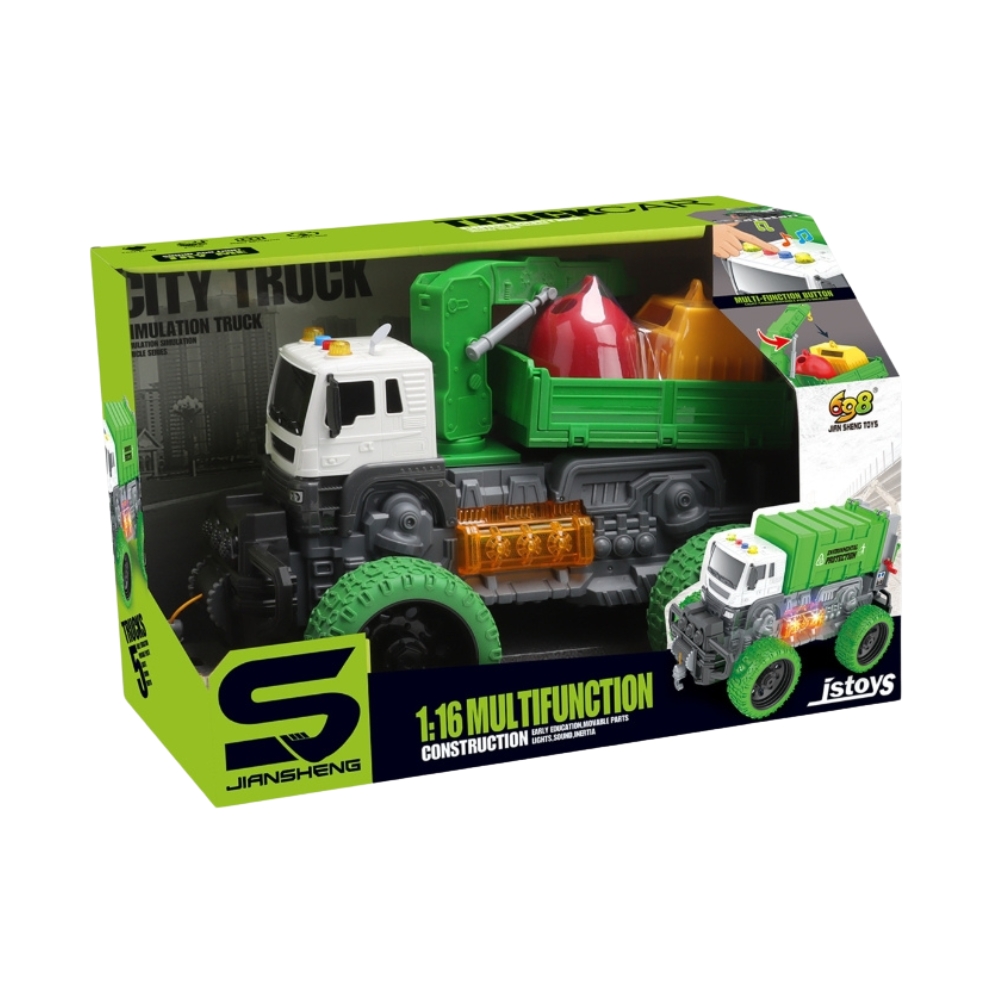Jucarie Camion Sortator de gunoi cu frictiune si buton presiune, sunete si lumini, 1:16, jstoys, ZJA304211