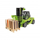 Un stivuitor interactiv, ideal pentru copiii pasionati de masinile industriale. Modelul are o scara de 1:16 si este realizat in nuanta de verde atragator, ceea ce ofera un aspect realist. Stivuitorul functioneaza pe baza de frictiune, astfel ca poate fi usor pus in miscare printr-o simpla impingere.