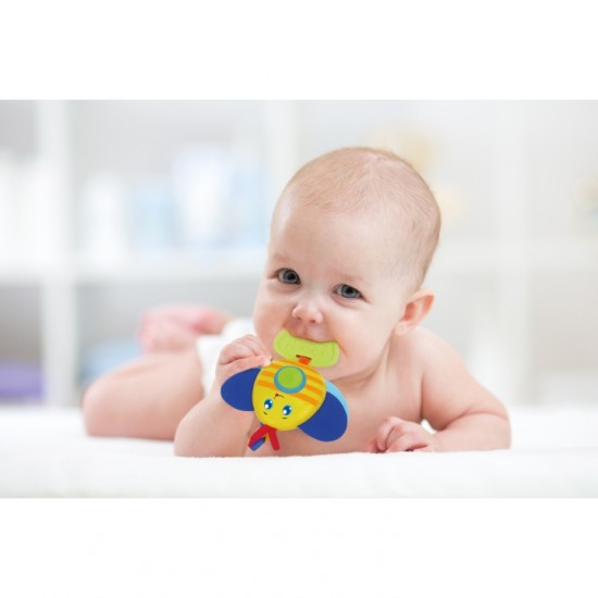 Jucarie dentitie Albinuta cu sunete si inel de agatare Winfun