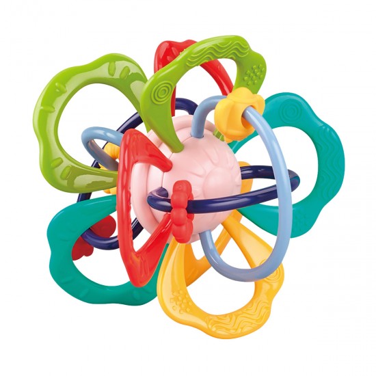 Aceasta jucarie este conceputa pentru a linisti gingiile iritate in timpul eruptiei dentare, oferind suprafete variate pentru ros si masaj gingival. In plus, jucaria dezvolta reflexul de prindere si abilitatile motorii ale bebelusului prin texturile si elementele din care este realizata.