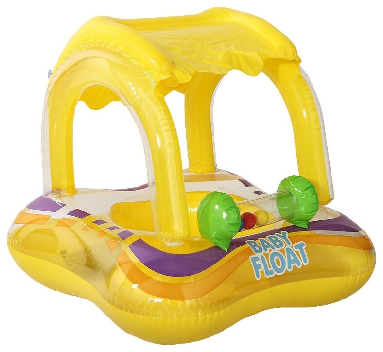 Cercul gonflabil, este foarte convenabil si interesant pentru bebelusi. Veti invata copilul cu apa. Palarioara ce acopera cercul, va proteja copilul de lumina directa a soarelui, protejind astfel pielea delicata a bebelusului de arsura. Zornaietoarea cu bile, situat in fata copilului, va face procesul de scaldat mai distractiv si mai interesant.