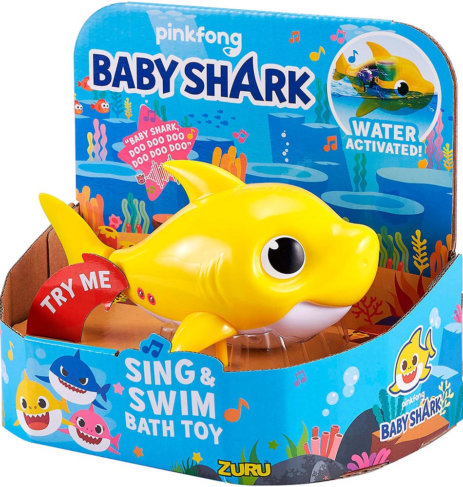 Robo-technology: puneti rechinul in apa, iar tehnologia Robo va invia jucaria. Atunci cind rechinasul inoata in apa acesta cinta celebra melodie "Baby Shark" si misca amuzant din coada.