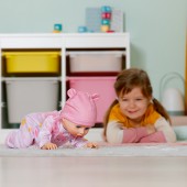 - Tarat: aseaz-o pe burtica, iar ea incepe sa se tarasca pe genunchi.