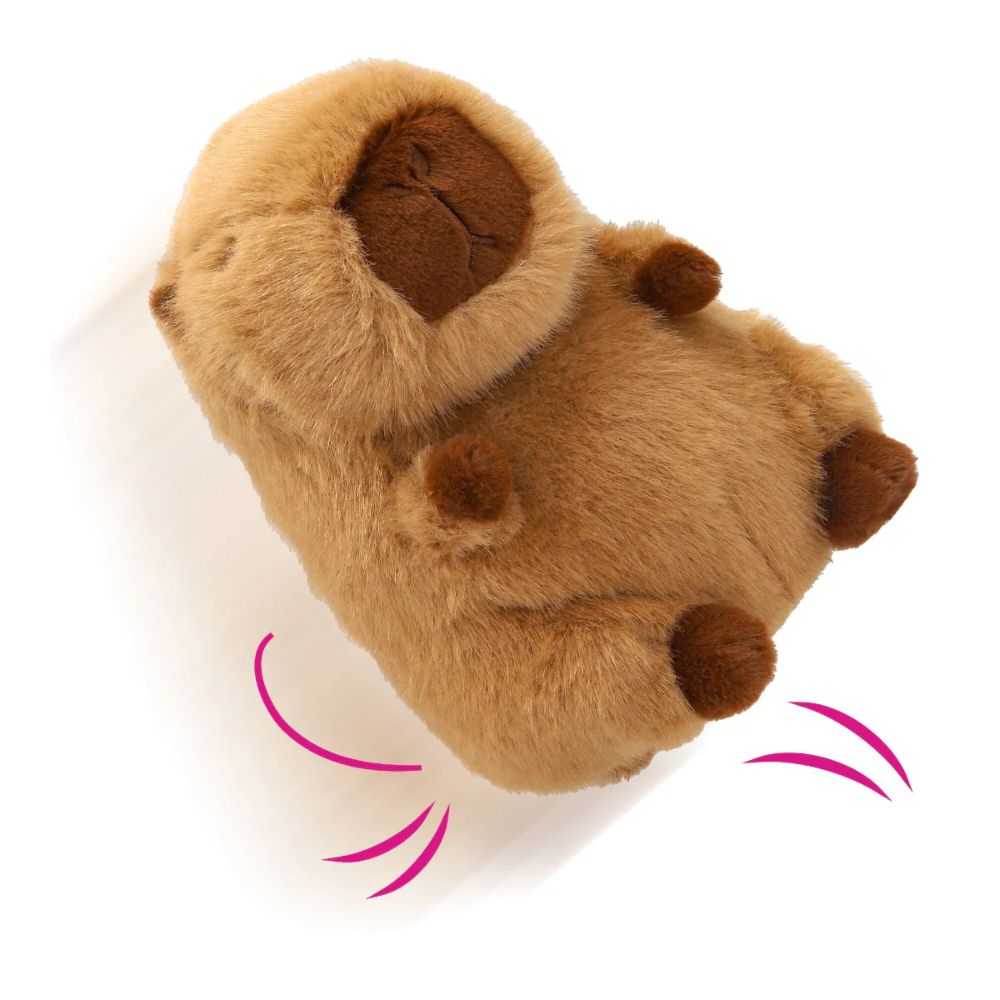 - Sunete Amuzante: Capibara emite sunete vesele care incurajeaza joaca si interactiunea, stimuland auditiv curiozitatea copilului.