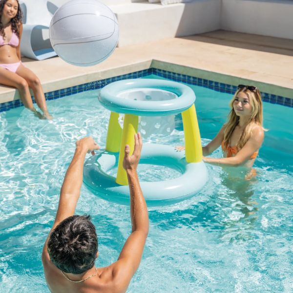 Setul de baschet plutitor de la Intex este accesoriul ideal pentru a adauga un plus de dinamism si competitivitate zilelor petrecute in piscina. Conceput pentru a transforma balaceala intr-un antrenament distractiv, acest set permite organizarea de meciuri captivante chiar in mijlocul apei. Constructia robusta din PVC rezistent dispune de o baza lata si stabila care mentine cosul la suprafata, chiar si in timpul aruncarilor mai energice. Pachetul vine complet cu o minge de baschet gonflabila, astfel incat competitia poate incepe imediat ce cosul este umflat. Este un mod excelent pentru copii si adulti de a-si exersa precizia si coordonarea in timp ce se racoresc.