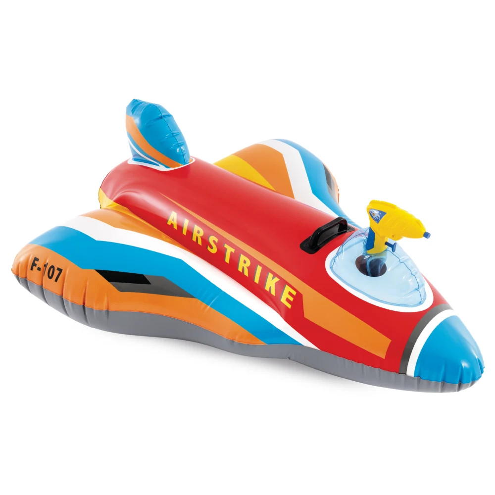 Pluta Intex Avion transforma orice zi la piscina intr-o misiune palpitanta de explorare si joaca interactiva. Conceputa special pentru micii piloti, aceasta nu este doar un accesoriu de plutire, ci un veritabil centru de comanda dotat cu un pistol cu apa functional, care asigura distractie nelimitata in timpul bataliilor amicale pe apa. Forma aerodinamica si baza lata ofera o stabilitate excelenta, in timp ce manerele robuste de prindere permit copilului sa isi mentina echilibrul cu usurinta, chiar si in momentele de joaca activa. Realizata din PVC rezistent, pluta este usor de manevrat si devine rapid atractia principala a verii, oferind siguranta si aventura intr-un singur pachet colorat.