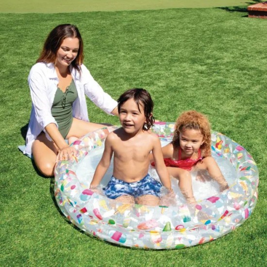 Piscina gonflabila pentru copii Ice Pop cu minge si colac, 122x25 cm, 150 L, 2+ ani, Delicii, Intex 59460