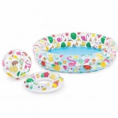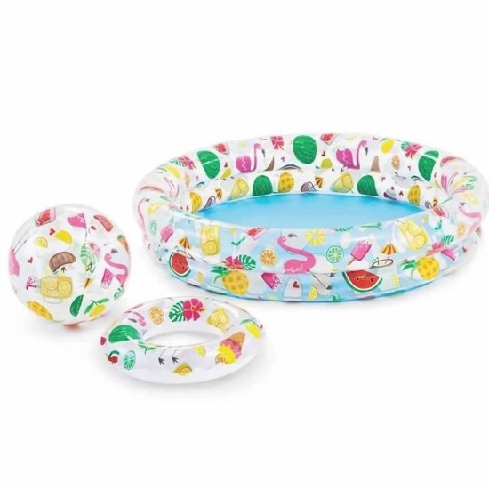 Piscina Intex Ice Pop este solutia completa pentru a crea un paradis al distractiei chiar in curtea ta. Acest set 3 in 1 a fost conceput special pentru copiii de peste 2 ani, oferind nu doar o piscina racoritoare cu un design colorat si vesel, ci si accesoriile perfecte pentru joaca: o minge si un colac gonflabil, ambele asortate tematic. Cu o structura formata din doua inele gonflabile ce asigura stabilitate si pereti moi pentru siguranta celor mici, piscina este locul ideal pentru primele interactiuni cu apa. Dimensiunile compacte permit instalarea facila pe terasa sau in gradina, transformand orice zi torida de vara intr-o aventura delicioasa si plina de zambete.