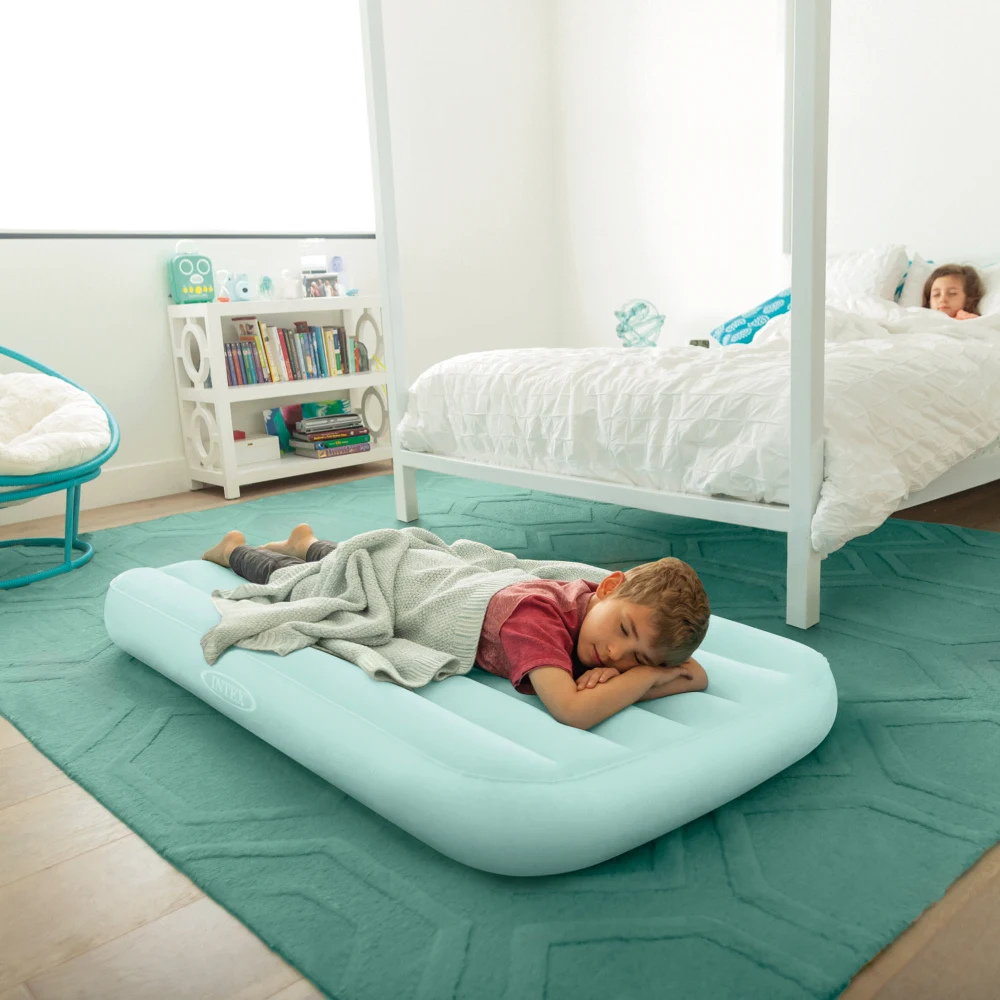 Salteaua Intex Cozy Kidz este solutia ideala pentru a oferi micutilor un somn odihnitor si plin de confort, fie ca este vorba despre o vizita la bunici, o vacanta cu familia sau o petrecere in pijama. Conceputa special pentru copii, aceasta saltea atrage prin culorile sale vibrante si suprafata superioara catifelata, extrem de placuta la atingere, care previne alunecarea asternuturilor. Structura interna cu canale longitudinale asigura o sustinere corecta a corpului si o stabilitate sporita pe parcursul noptii. Fiind usoara, compacta si dotata cu propria geanta de transport, Cozy Kidz transforma orice spatiu intr-un loc de dormit primitor si sigur in doar cateva minute.