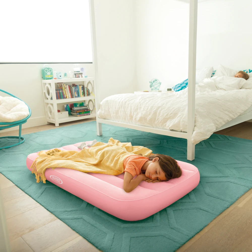 Salteaua Intex Cozy Kidz este solutia ideala pentru a oferi micutilor un somn odihnitor si plin de confort, fie ca este vorba despre o vizita la bunici, o vacanta cu familia sau o petrecere in pijama. Conceputa special pentru copii, aceasta saltea atrage prin culorile sale vibrante si suprafata superioara catifelata, extrem de placuta la atingere, care previne alunecarea asternuturilor. Structura interna cu canale longitudinale asigura o sustinere corecta a corpului si o stabilitate sporita pe parcursul noptii. Fiind usoara, compacta si dotata cu propria geanta de transport, Cozy Kidz transforma orice spatiu intr-un loc de dormit primitor si sigur in doar cateva minute.