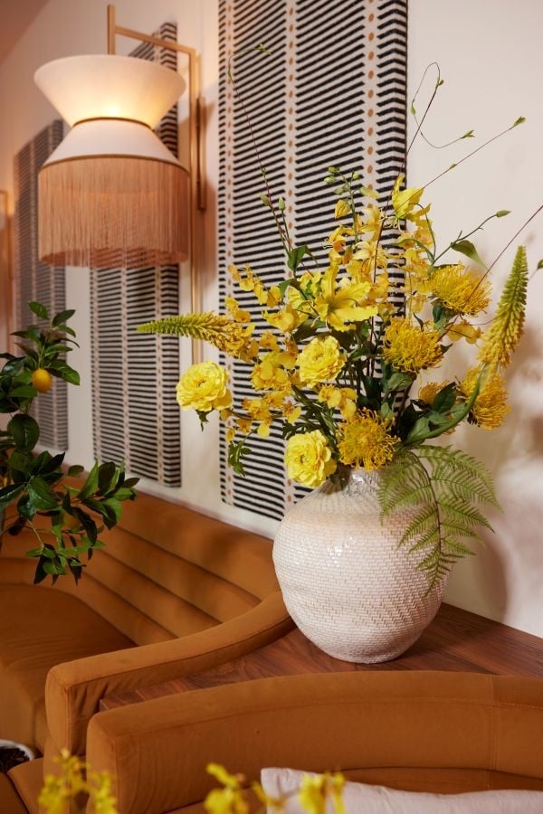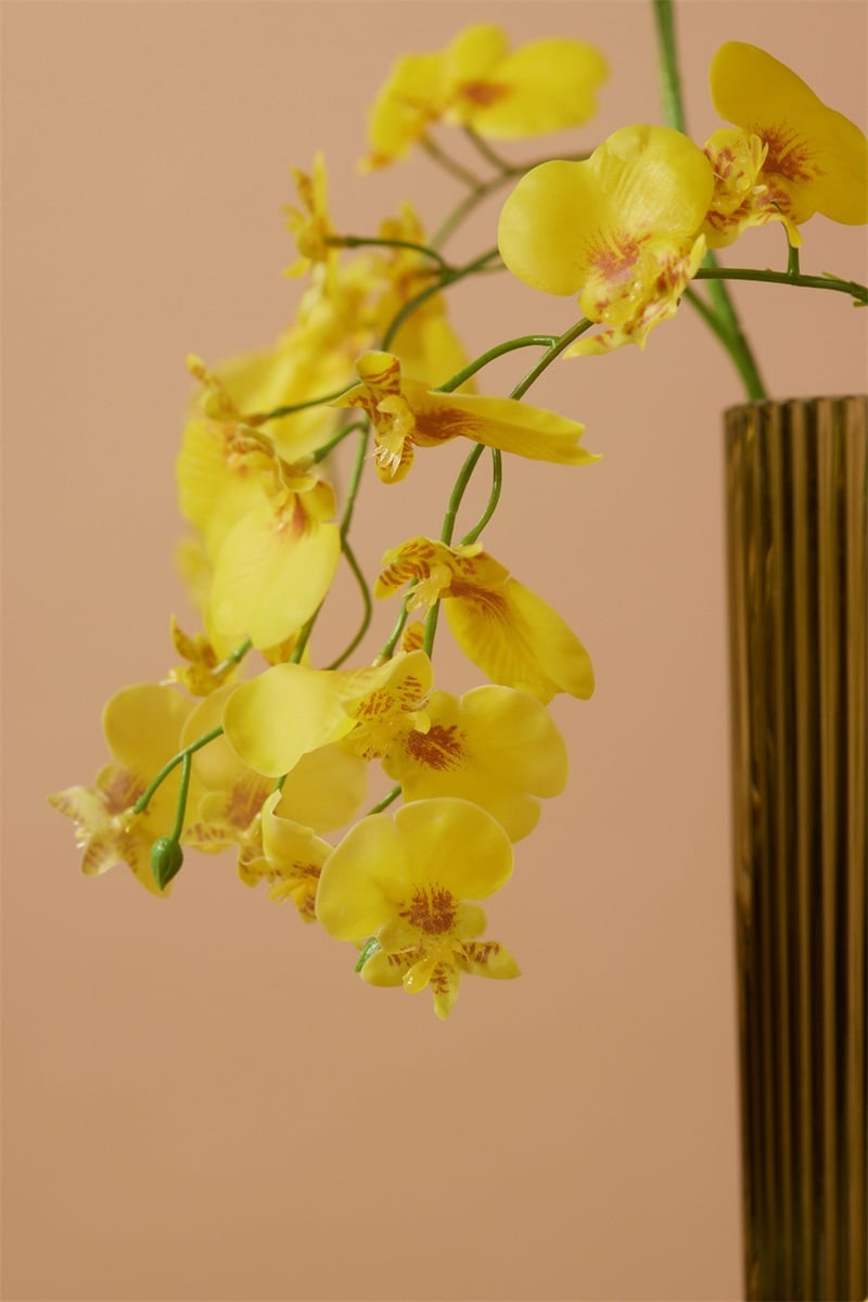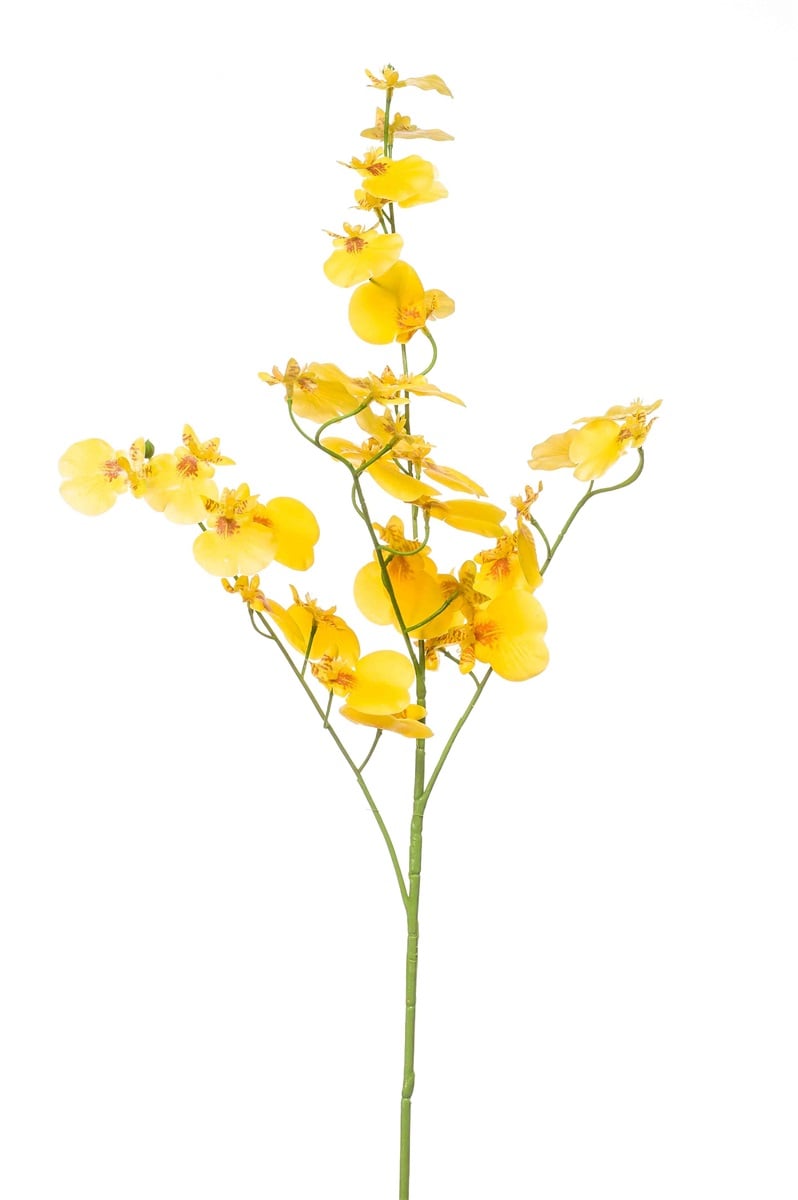Oncidium artificial galben, ramura de 75 cm, este o floare decorativa eleganta din familia orhideelor, ideala pentru a aduce un aer exotic si luminos in orice incapere. Aceasta orhidee artificiala Oncidium, cunoscuta si ca "orhideea dansatoare", impresioneaza prin florile sale delicate si realiste, fiind perfecta pentru aranjamente florale sofisticate, vaze decorative sau buchete exotice. Ramura de orhidee galbena artificiala este potrivita pentru decoruri moderne, evenimente speciale sau pentru a oferi un accent tropical in casa si birou. Planta decorativa artificiala de Oncidium nu necesita ingrijire, isi pastreaza frumusetea pe termen lung si ramane la fel de spectaculoasa in orice sezon. Realizat din mase plastice.