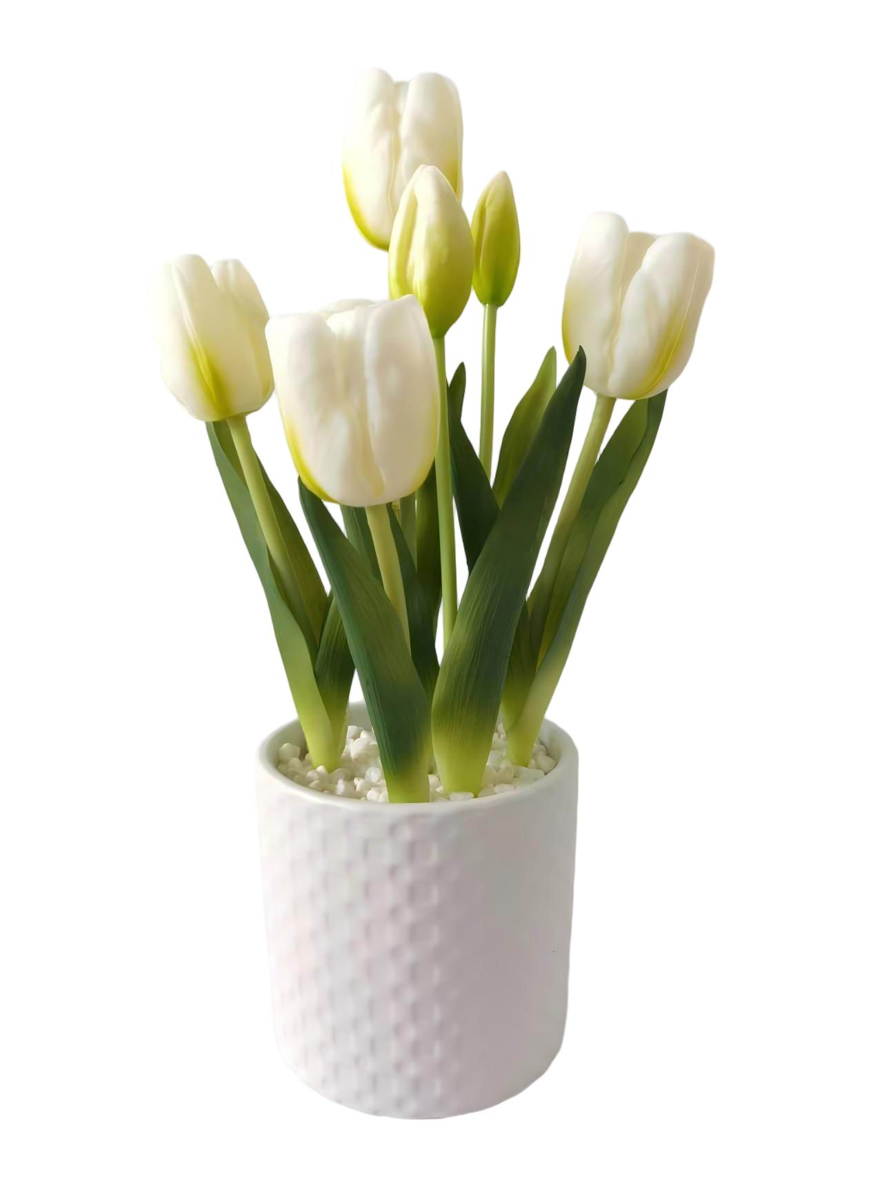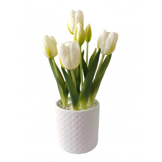 Lalele artificiale albe in ghiveci 32 cm ZJA397013